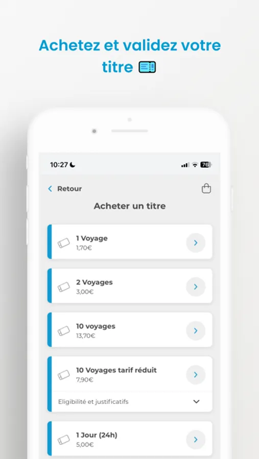 Achat et validation de titres, recherche d'itinéraires et suivi de votre trajet en temps réel, horaires sur vos lignes, info trafic, offre de transport autour de vous … retrouvez toutes les solutions essentielles à portée de main.