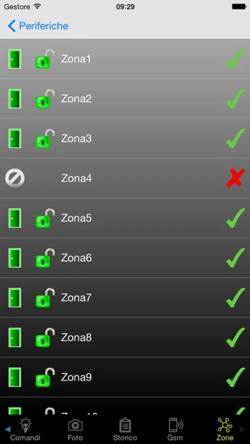 -Visualizzare lo stato delle zone del sistema e eventualmente abilitarle/disabilitarle;
