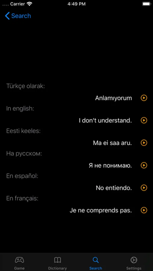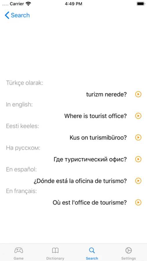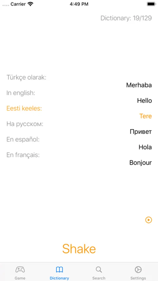 When studying Estonina, you will fill up a vocabulary of English words. Tips are accompanied by duplicated words in English, Estonian, Russian, Turkish, Spanish and French languages.