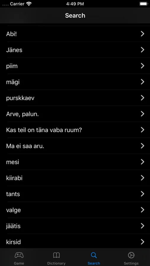 Learn new Estoninan words and phrases in a game manner. A word or phrase is accompanied by three different versions in English.