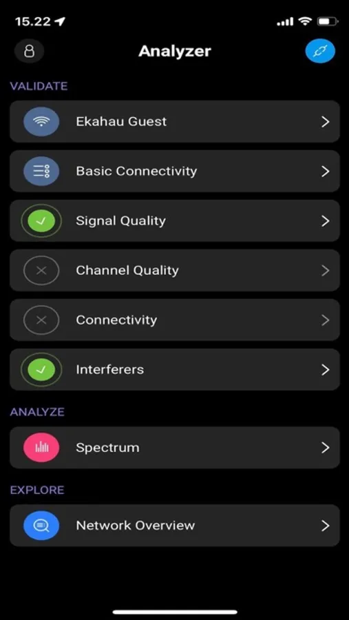 The Analyzer app is a professional grade Wi-Fi health validation and troubleshooting tool for iPhones and iPads. The auto test function diagnoses your network faster and with more accuracy than any other product on the market. The simple interface provides a quick and easy-to-understand pass/fail indication of Wi-Fi network quality, identifying network problems based on predefined requirements. These predefined requirements are the most common network issues such as channel utilization and co-channel interference