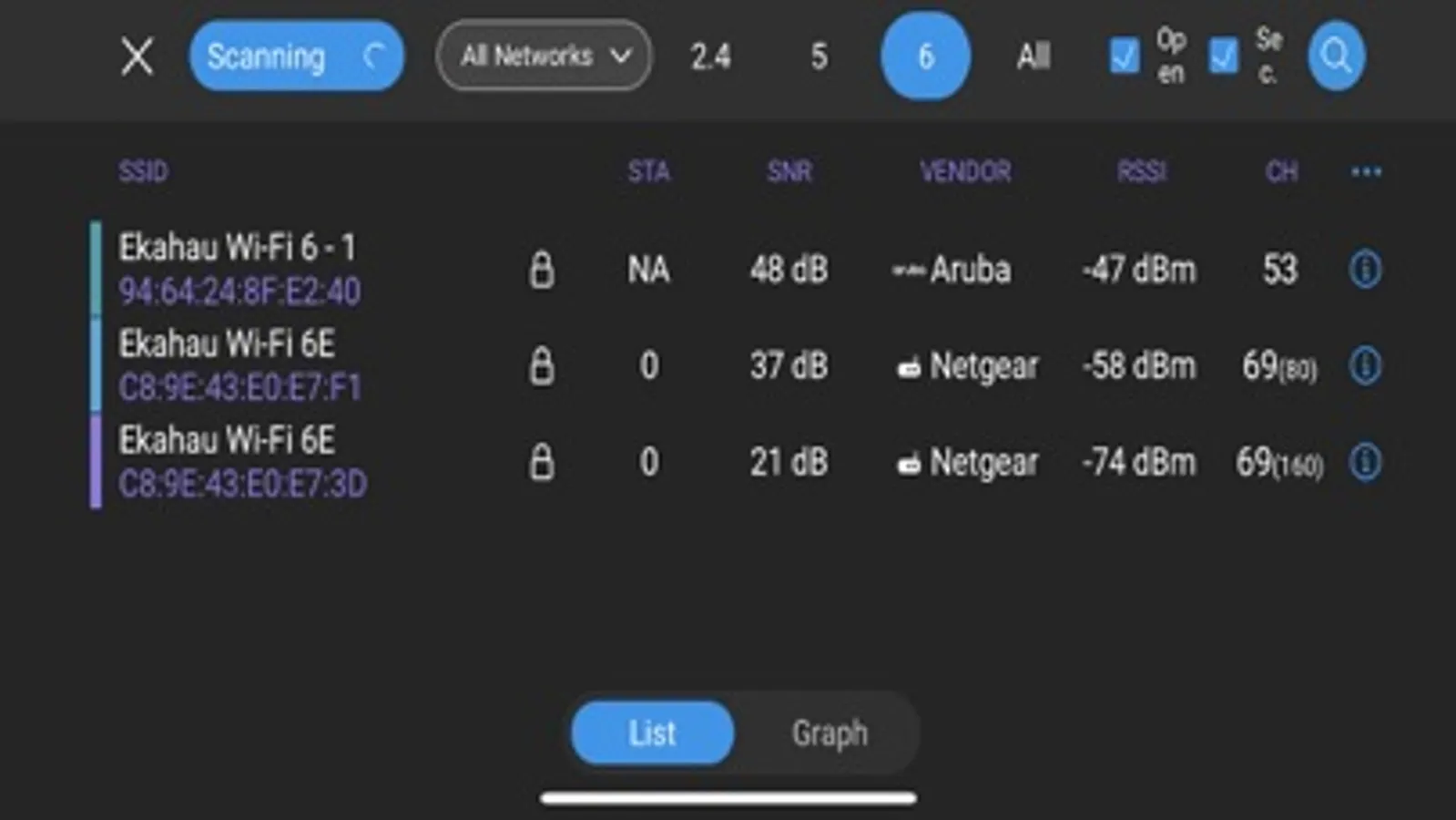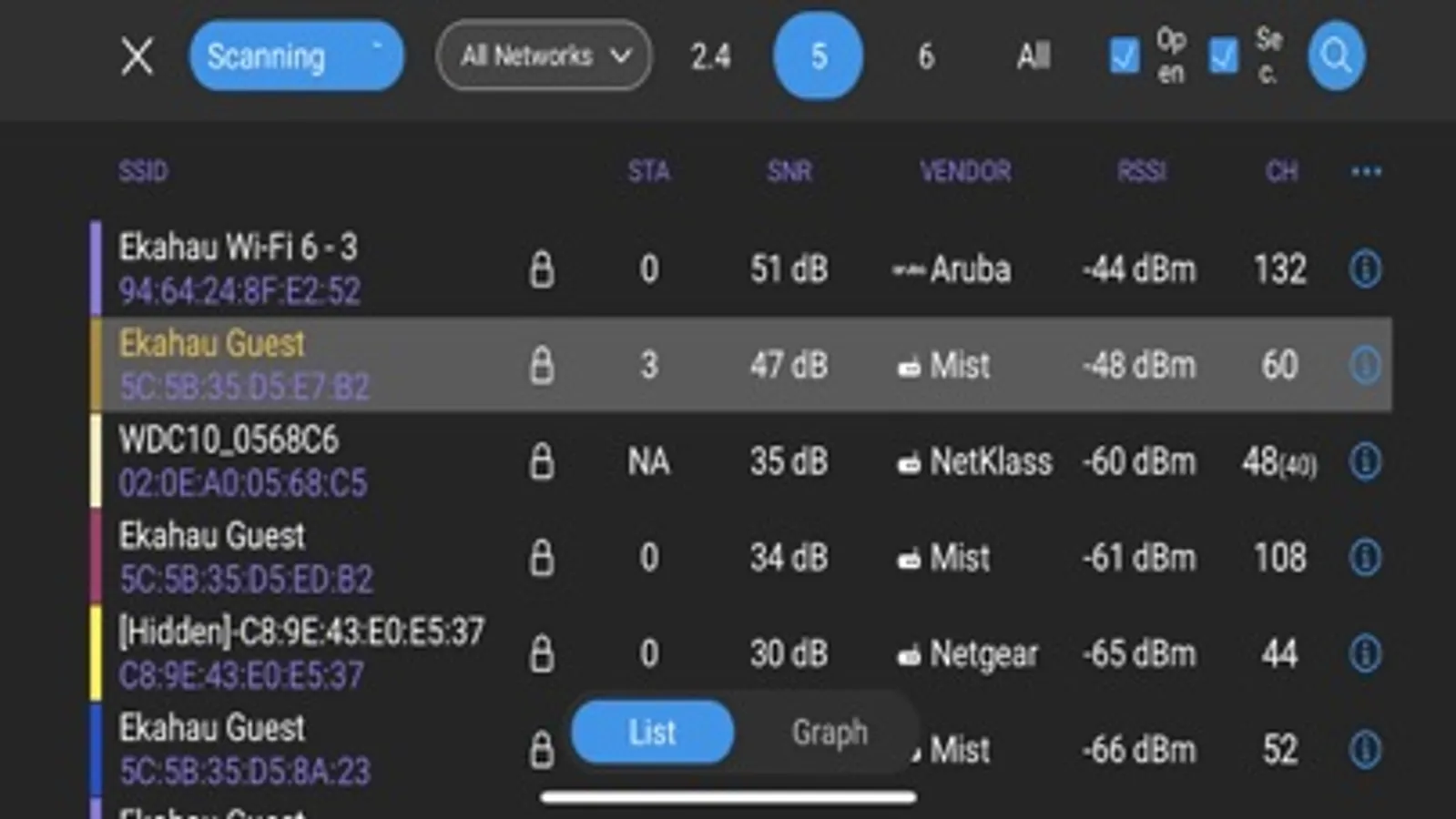A spectrum analyzer can be critical in the troubleshooting process. It records and measures the strength (power/energy) of both Wi-Fi and non-Wi-Fi traffic that exist in your network environment. This allows you to quickly identify potential interferers such as wireless cameras, cordless phones, or other wireless devices. In addition, a spectrum analyzer can show the channel of the measured traffic. This can allow you to optimize your network channels for peak performance while avoiding interference.