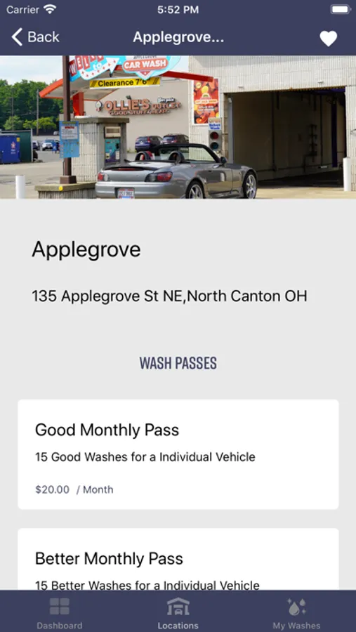 *View locations, directions, and wash plans offered by site.