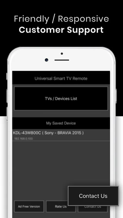 If your TV brand is not listed or the Universal TV remote app is not working with your television, please drop us an email with your TV brand. We will make the app work for you.
