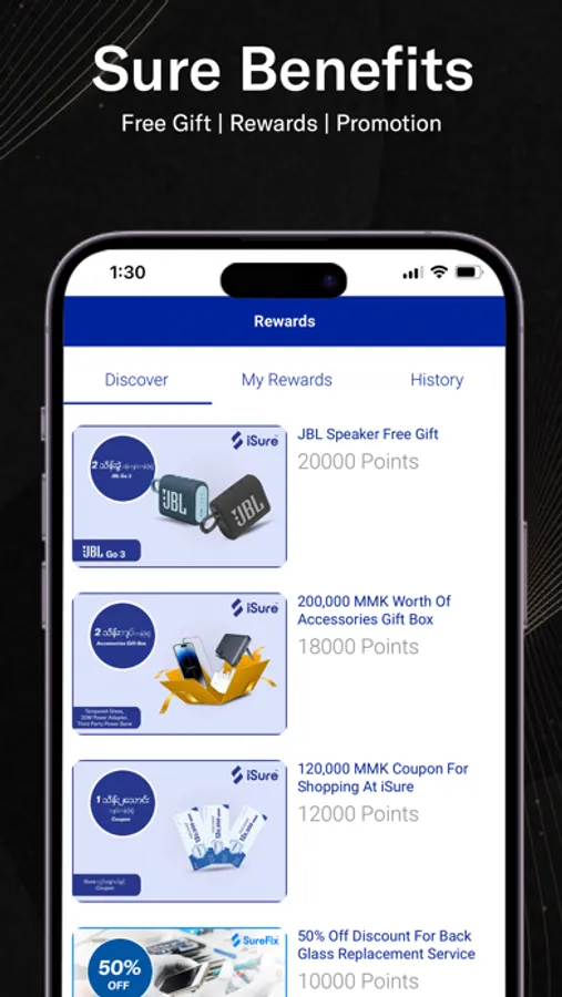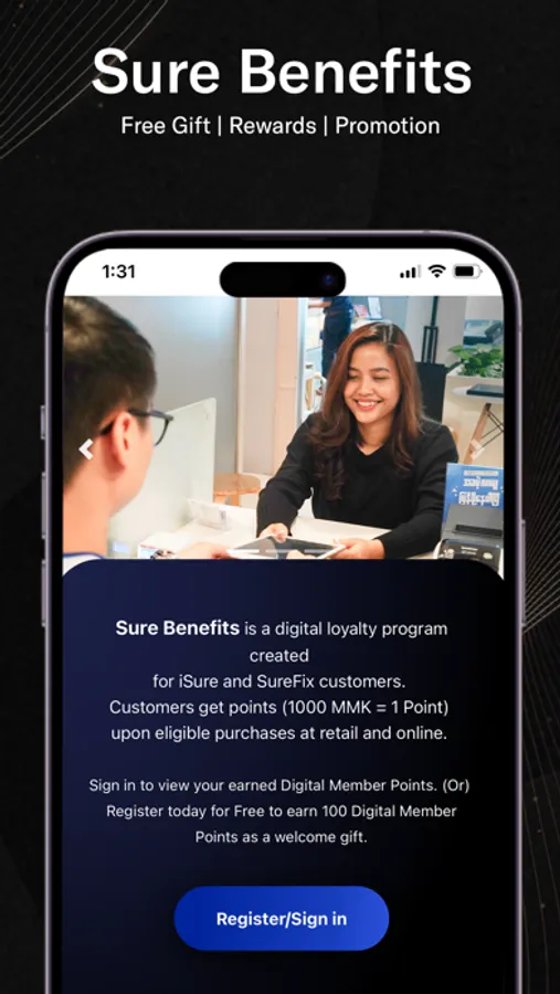 Sure Benefits is an application to see what rewards and free gifts you can get using the points you received from your purchases. New members can also register membership from this app.