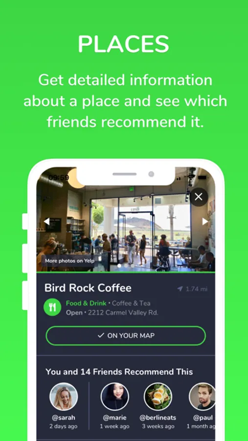 - You can add recommendations from friends to your map immediately so you'll never forget them.