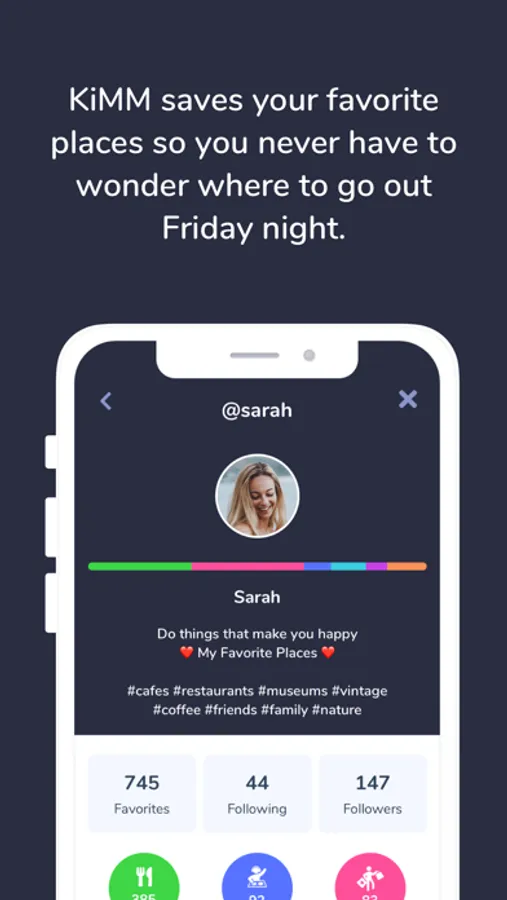 - No matter where you are: KiMM shows you where your friends' next favorite places are.
