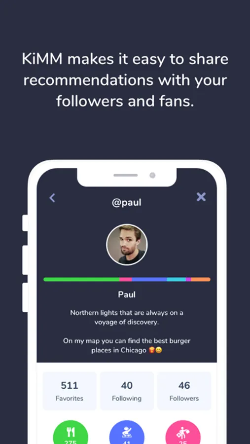 Influencers, media, and bloggers can also benefit from KiMM: followers, readers, and customers see all tips on a map or in ranking lists and do not have to scroll in endless social media threads or search via Google. Hotels, cities, and AirBnB hosts can replace paper city maps and handwritten notes with KiMM.