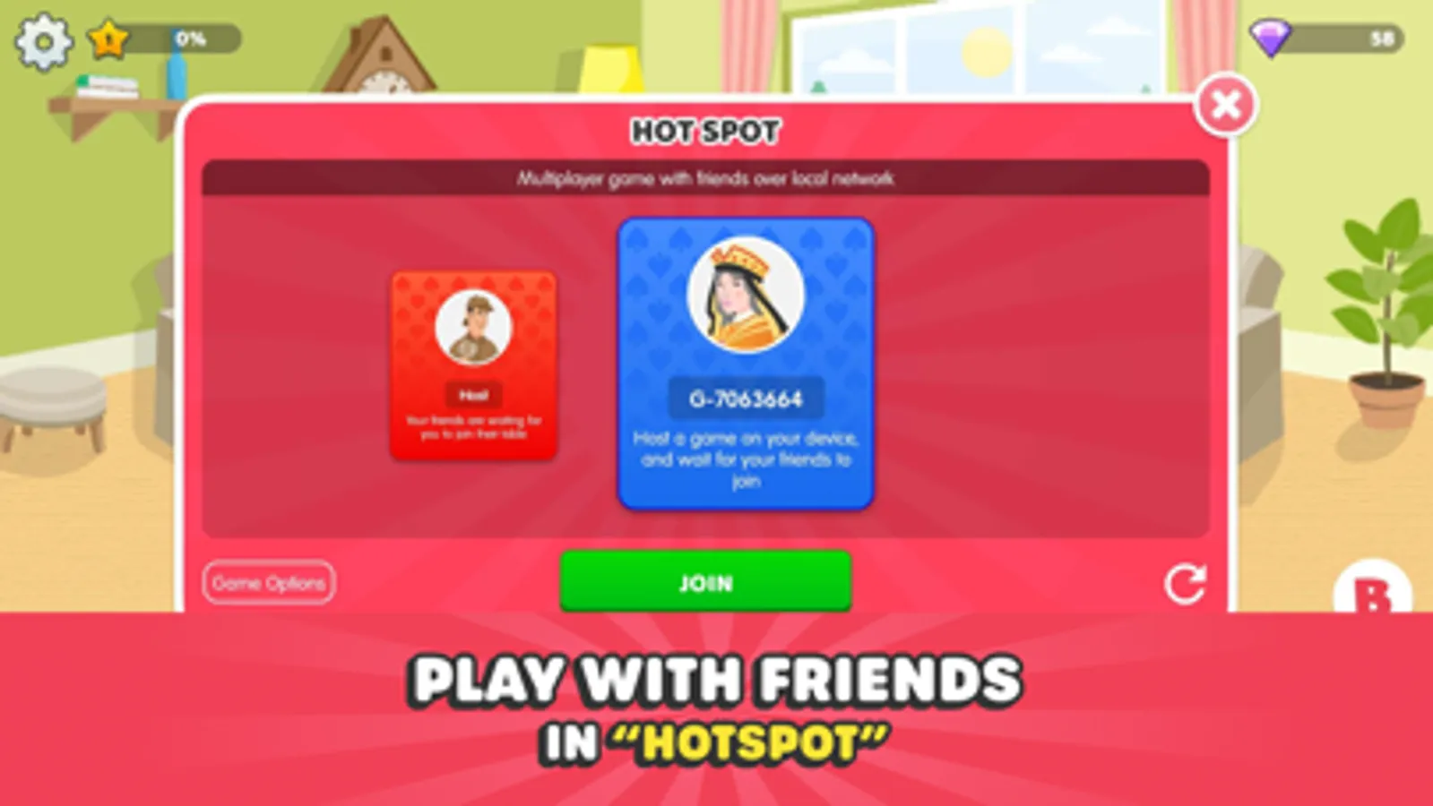 Play with friends nearby. Easily connect devices either through a shared WiFi network or your mobile Hotspot. Doesn’t need internet connection.