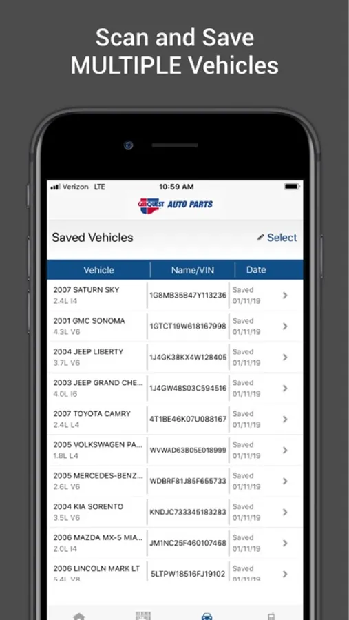 The decoded VIN information will appear on their account’s "Previous Vehicles" list and allows shops to: