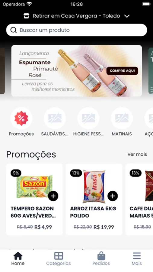 1 - Selecione os produtos: navegue pelas categorias e escolha os seus itens.