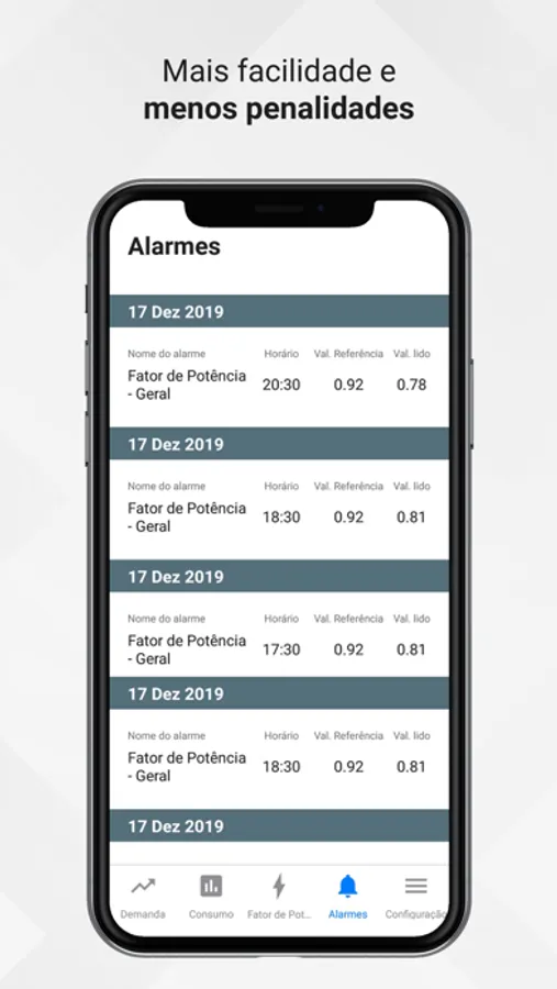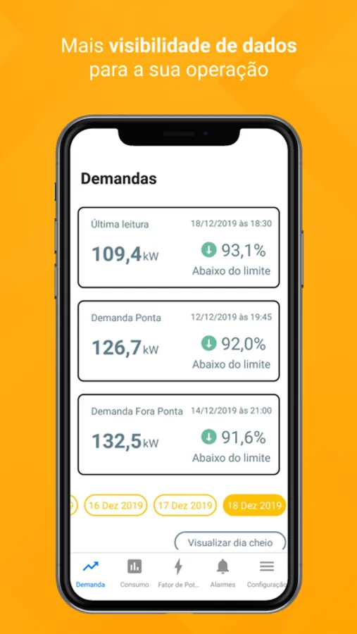 Visualizar dashboards das metas de redução de consumo de energia da sua empresa e indicadores de energia reativa e fator de potência;