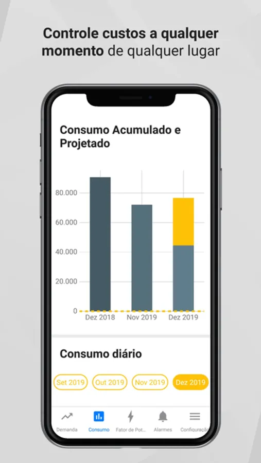 Visualizar o consumo acumulado, projetado e comparativo com outros períodos.