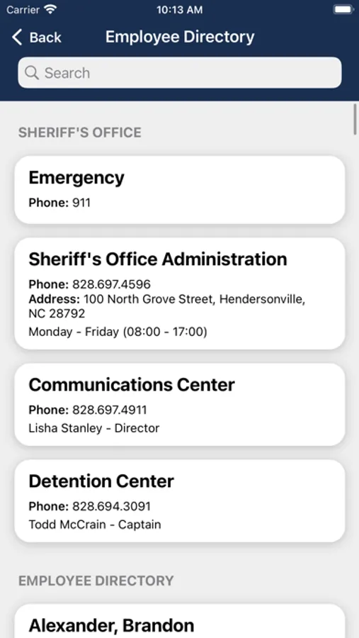 The Henderson County North Carolina Sheriff’s Office mobile application is an interactive app developed to help improve communication with area residents. The Henderson County Sheriff App allows residents to connect with the sheriff’s office by reporting crimes, submitting tips, and other interactive features, as well as providing the community the latest public safety news and information.