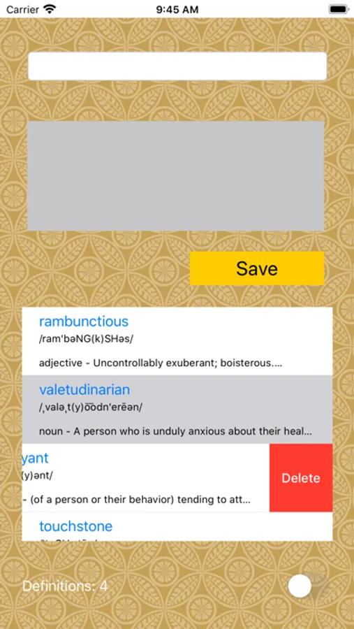 Have you ever wanted to keep a running list of the interesting and unique words you find on the internet? Sure you can look up valetudinarian, but once you read the definition, the word is short-lived in your head. How sad is that? Now you can keep track of all of the interesting, amazing and downright odd words you find on the internet. Works great for prepping for vocabulary tests. You can even add your own definitions or augment others you find.