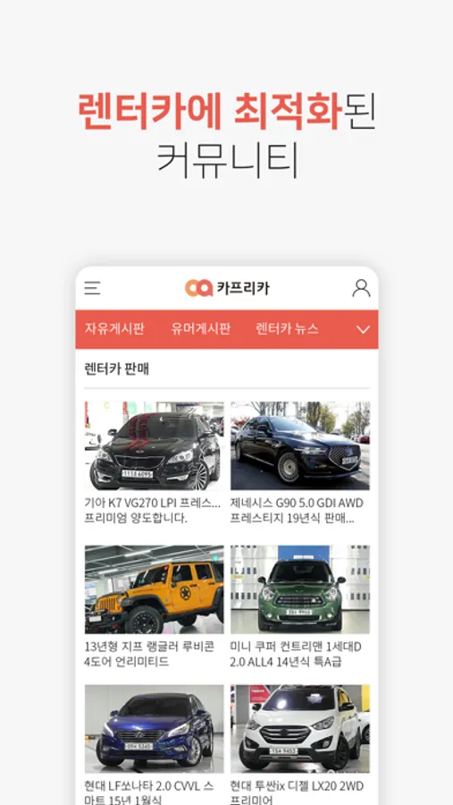 렌터카 정보는 물론 다양한 주제가 있는 카프리카 커뮤니티를