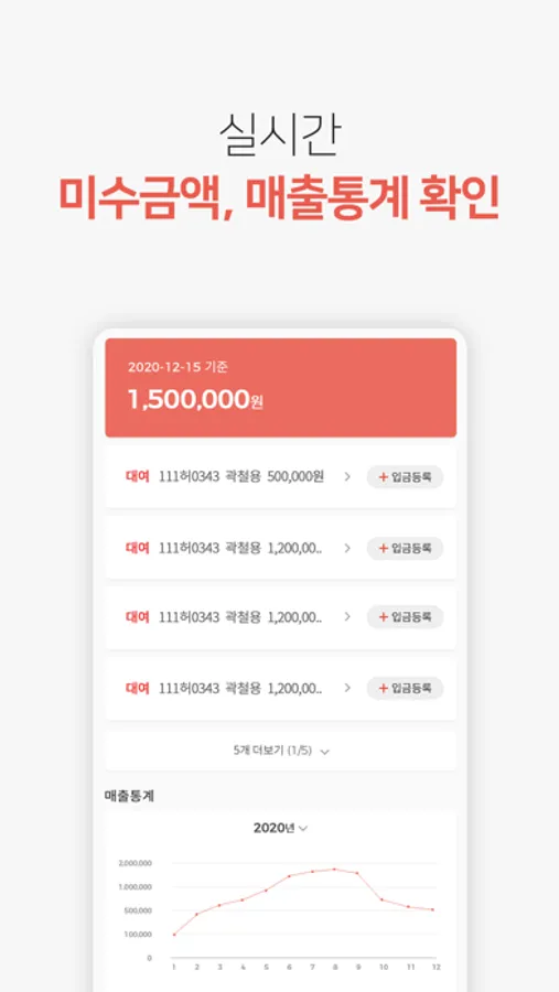 - 매출현황 : 기간별 차량의 매출 통계 확인 및 미수금 관리
