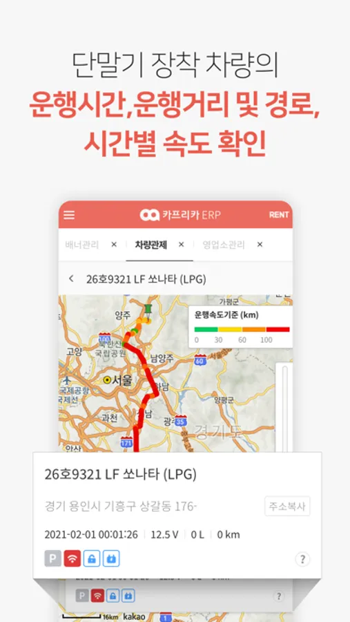 - 차량운행기록: 차량관제 서비스를 통해 운행이력 확인, 법인고객에게 운행이력 제공가능