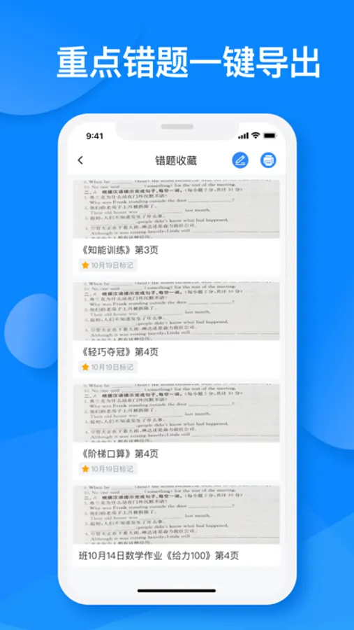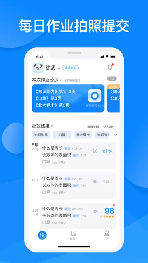 传而习家长版App主要用于接收和提交线下纸质作业,提交的作业在传而习教师版批改过可以回传给家长版,整个系统在不改变传统作业习惯的前提下,将科技手段无缝接入教师和学生的作业任务,实现纸质作业的在线高效批改和作业分析,减轻教师在作业环节的工作负担,同时为教师提供学生作业的数据参考。另一方面学生以极其便捷的方式将纸质作业电子化,实现作业的长期保存、分类整理,同时获得每次作业的详细批改结果和数据统计。