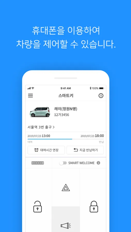 자동차 키가 없어도 앱에서 차량 문을 잠그거나 열 수 있습니다.