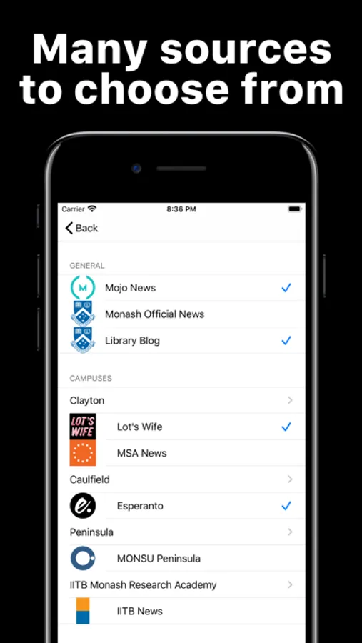 Select which news sources you're interested in, and Monash Zeitgeist will create a newsfeed for you.