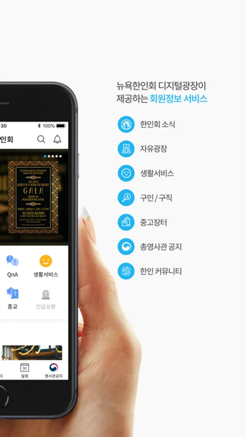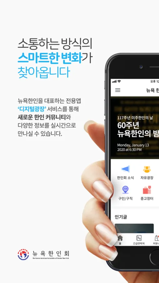 KAAGNY App. provides services for improving the living information and mutual solidarity of New York Koreans such as living convenience and emergency, New York life, travel and accommodation QnA, and communicating with 2nd and 3rd generations.