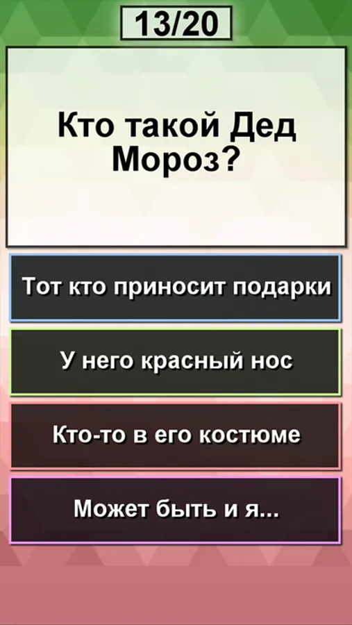 “Ты - Дед Мороз?” - это тест, который поможет точно определить твою дедморозовость. Пройди этот тест и ты узнаешь, не являешься ли сам Дедом Морозом (всякое бывает); а если нет - 20 веселых вопросов помогут обнаружить психологического красноносого деда засевшего у тебя подсознании.