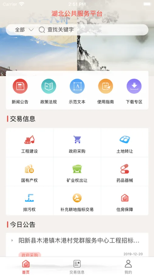 湖北省公共服务平台是一款办公效率类产品,主要为湖北省公共资源交易平台提供移动端的信息服务,其主要功能有:浏览招标公告、采购公告,已经平台相关的新闻公告等。