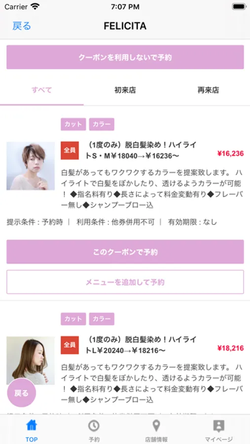 お得なクーポンが配信されます。ネット予約時にクーポン利用での予約も可能なので来店時もスムーズに施術頂けます。