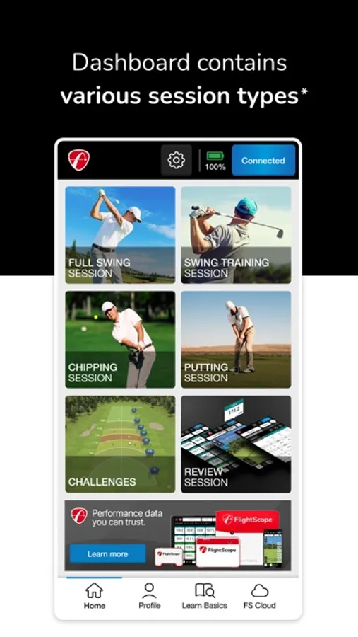 Improve your game and bring your practice to a new level with the FlightScope Golf mobile app. Pair your device with a FlightScope radar to record training sessions providing accurate data and automatically trimmed video. FS Golf provides various ways of displaying data so you can choose your favourite and focus solely on aspects you want to improve.