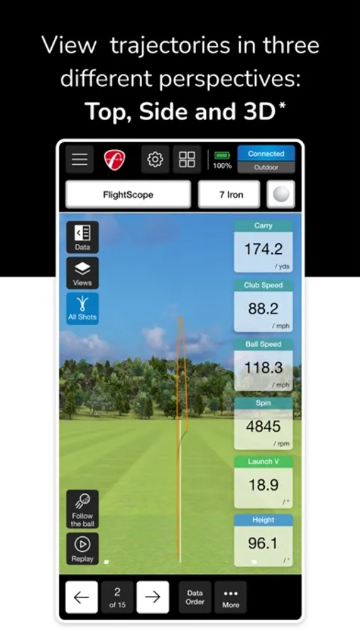 3D trajectory, top and side views – analyze your shot trajectories from different angles and perspectives.
