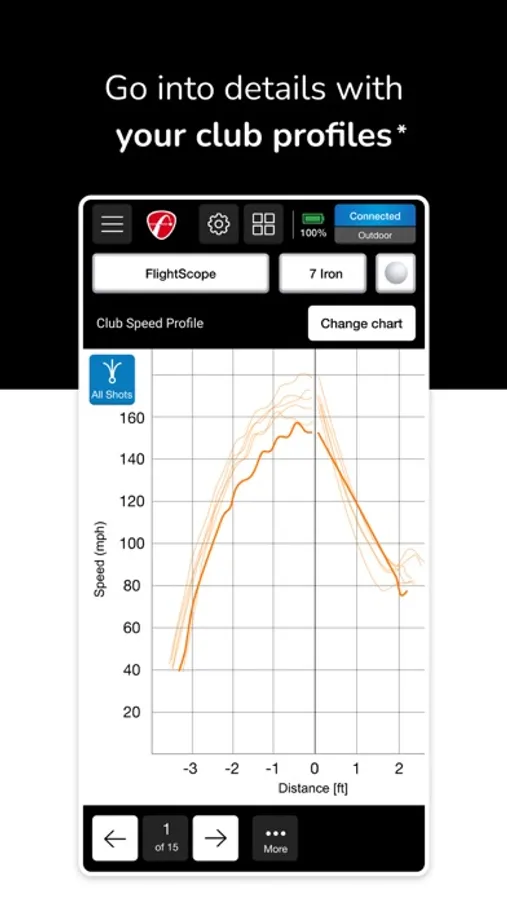Apple Watch – choose one out of six layouts and display selected parameters instantly on your smartwatch, review your shots, switch clubs quickly and easily, and check when the radar is ready for the next shot, all on your wrist.
