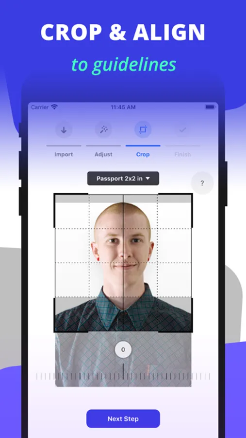 4. Crop, rotate and align your photo to visual photo requirement guides.