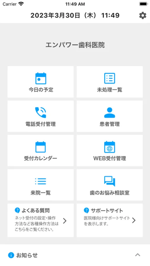 ※アポイントや患者様の管理以外は、ウェブのアポイント管理台帳側での設定が必要です。