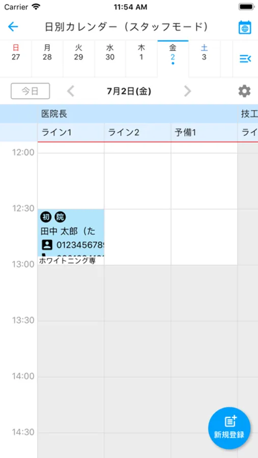 ネット受付の管理はもちろんのこと、その場で空いてる時間枠をチェックして次回受付のアポイント登録が行えます。