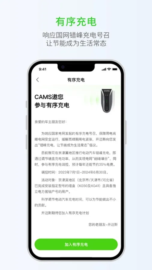 【即插即充很方便】开迈斯支持指定车型开通即插即充功能,插枪启动充电,方便快捷。