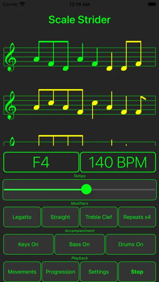 Introducing Scale Strider - the ultimate practice companion for musicians! Our app offers a wide variety of scale patterns to help you improve your skills and take your playing to the next level. With easy-to-use features and customizable settings, you can tailor your practice sessions to your specific needs and goals. Whether you're a beginner or a seasoned pro, Scale Strider is the perfect tool to help you master your instrument. Download Scale Strider now and start your journey to becoming a better musician today!