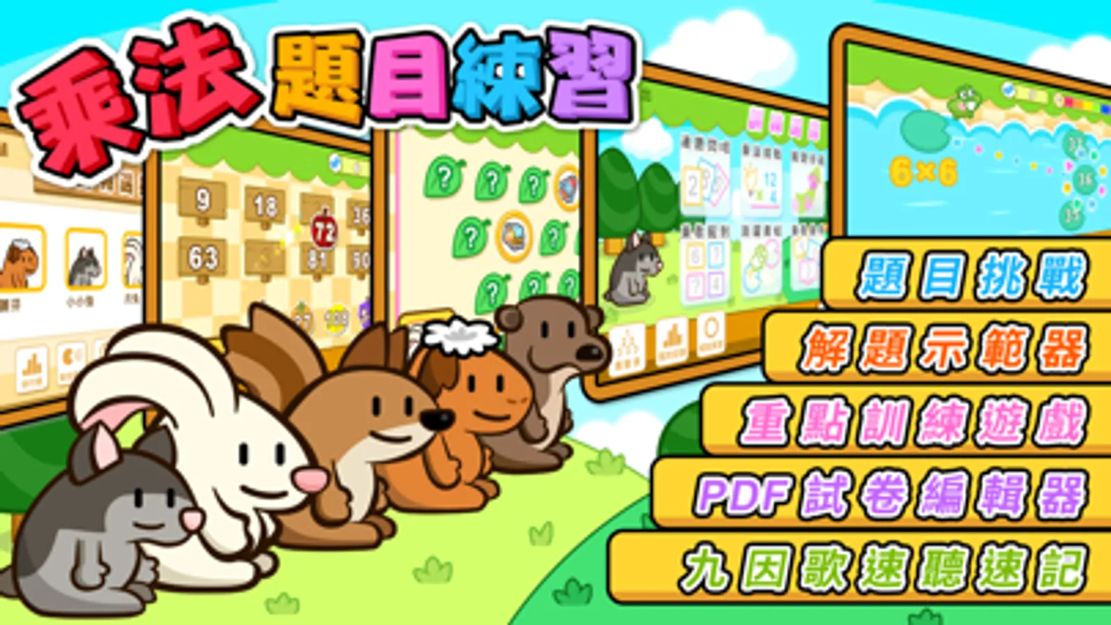 乘法題目練習 是一套專為兒童而設,透過速聽輕易熟練九因歌,通過有趣的重點訓練遊戲練習乘法,解題示範器及試卷編輯器,幫助針對弱項自製特訓方案。