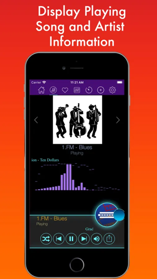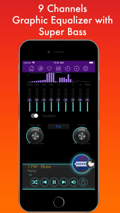 The application gives high quality sounds with powerful 9 channels graphic equalizer.