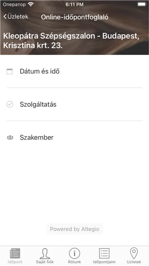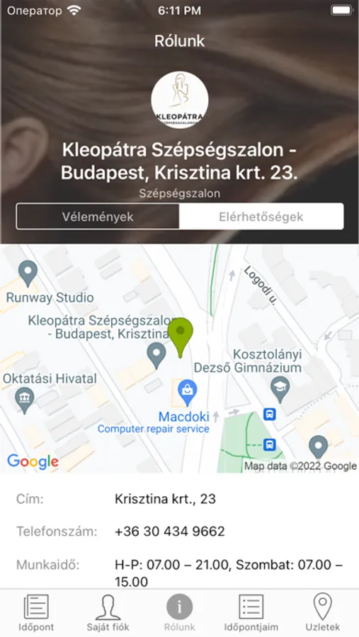 Kleopatra szépségszalonok"- Minden ami szépség, csak Neked! Fodrászat, kozmetika, manikűr, pedikűr, műköröm, masszázs. Foglalj időpontot a mobilodról, töltsd le az applikációt a legfrissebb ajánlatokért, a személyre szabott kedvezményekért és kényeztesd magad elérhető áron! Kövesd nyomon a bérleteidet, előző foglalásaidat és oszd meg velünk véleményed! Nálunk mindent egy helyen megtalálsz, ami szükséges a magabiztos megjelenésedhez! Keress bennünket az ország több pontján!
