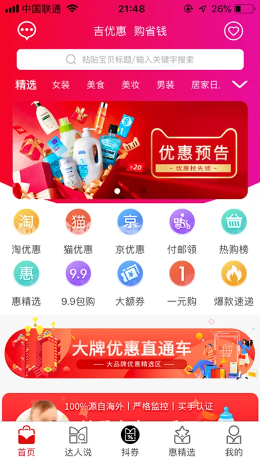 吉优惠是优惠信息的搬运工,专注于以更实惠的价格、更低的选购成本来完成网购。精选目前主流的电商平台中,过万种的商品优惠信息,涵盖