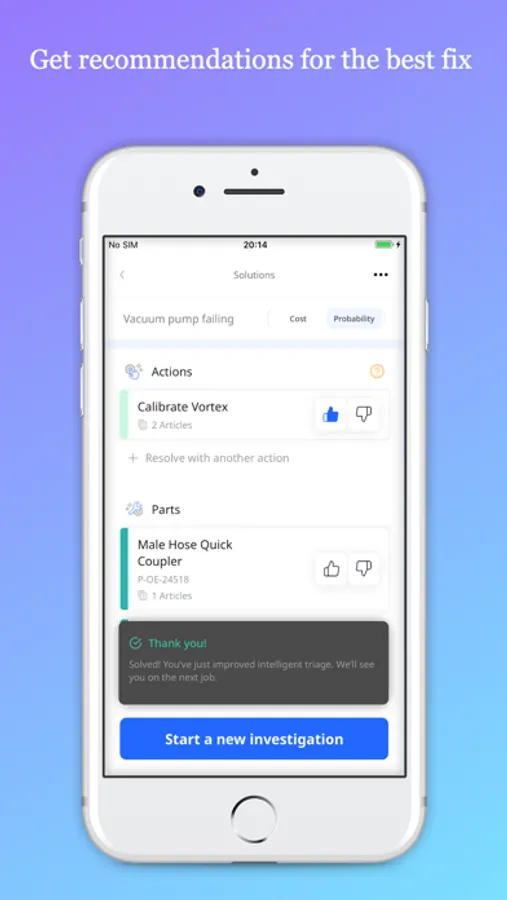 The most accurate diagnostics and troubleshooting tool driving low touch, high satisfaction service experiences. Quickly troubleshoot and triage even the most complicated equipment problems like an expert with Aquant's Service Co-Pilot. Start your investigation by entering the customer complaint into a short form. Service Co-Pilot then walks you through the diagnoses by asking the right follow-up questions based on your scenario. Because Service Co-Pilot is informed by real-world best practices, the system then leads you to the most likely solutions and identifies the most accurate parts needed. Quickly access relevant product information, documentation, wiring diagrams, and more to help you get the job done right. Escalate support to the right resource with additional visual guidance through built-in video calling and augmented reality illustrations. Service Co-Pilot continues to get smarter with use as it learns from each job. You can get to the root of the problem quickly and implement the best possible fix.