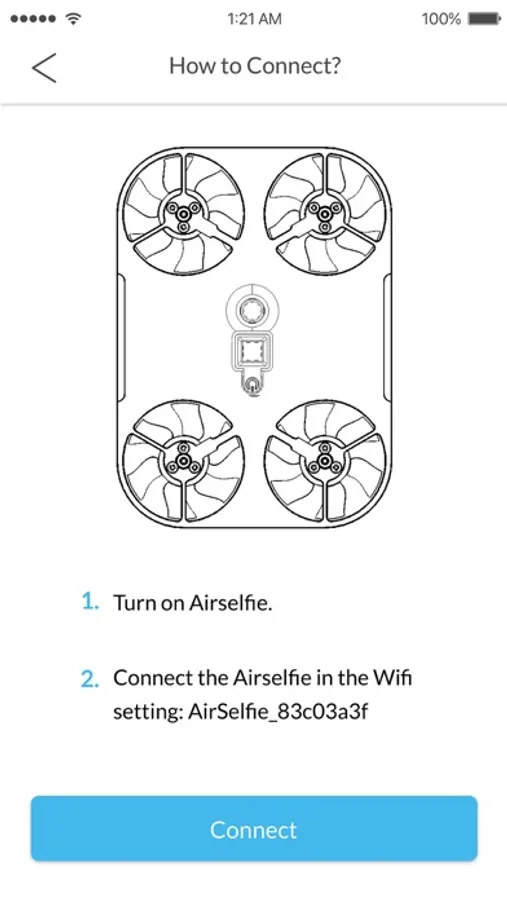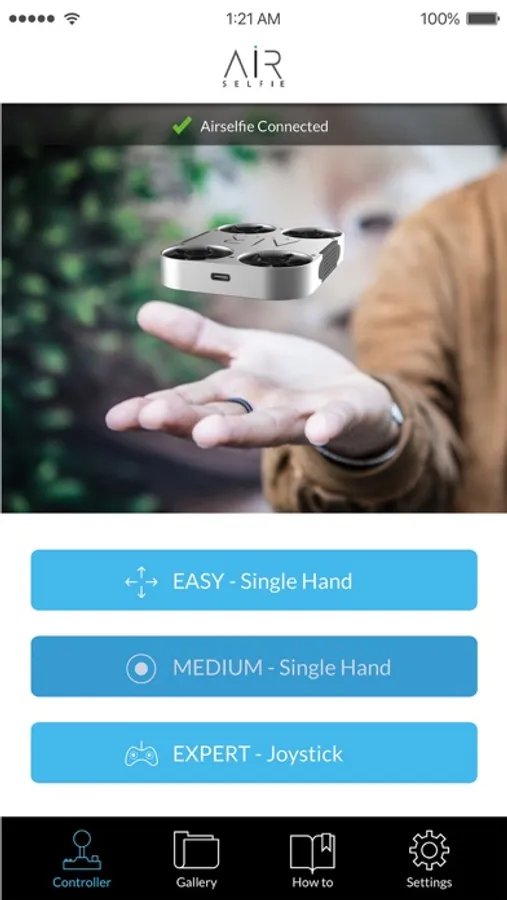 AirSelfie2 is controlled using a free, intuitive app. Press and Hold to take off, shoot photos, take videos, then land safely. Gain different levels of control with the easy mode, medium mode, or expert mode. Delay snapping by up to 10 seconds using the timer (enough time to put your phone away), take multiple shots, then share directly on social media to astound your friends. This app is for AirSelfie2 only.