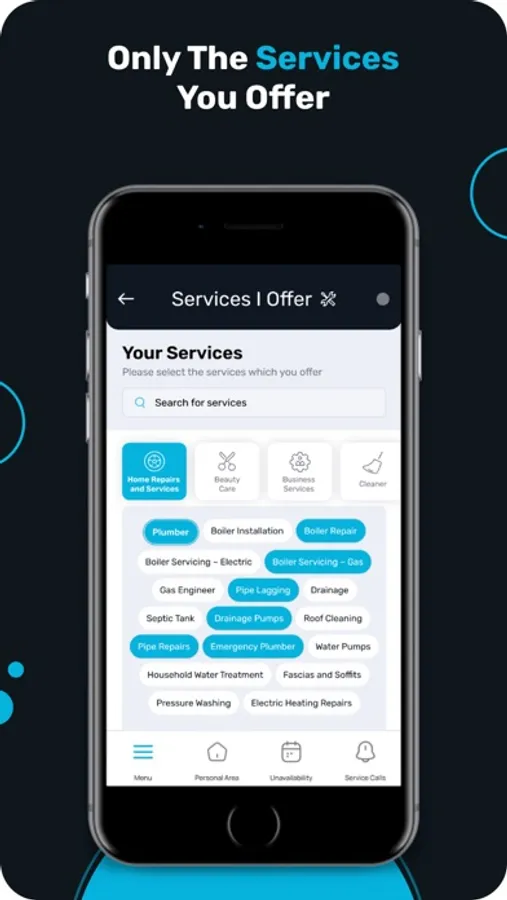 ▶ Only receive calls for your services - Set the types of services you offer and get a stream of customers requesting only those services.