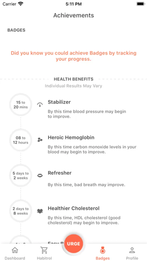 To make quitting smoking more fun, set yourself personal challenges and engage in activities to push your boundaries. Earn badges by taking and accomplishing challenges.
