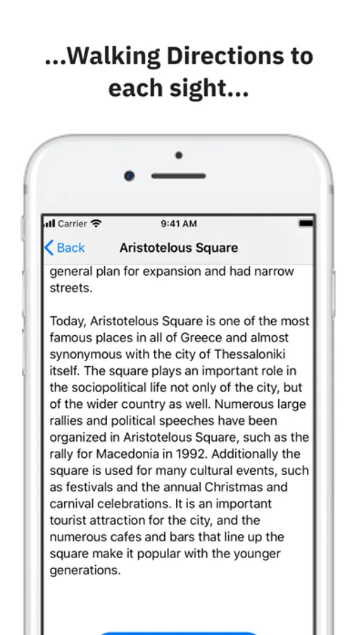 Simplicity is key. The travel guide is made so you can follow a simple walking tour through Thessaloniki learning about the most important history and architectural facts of each sight.