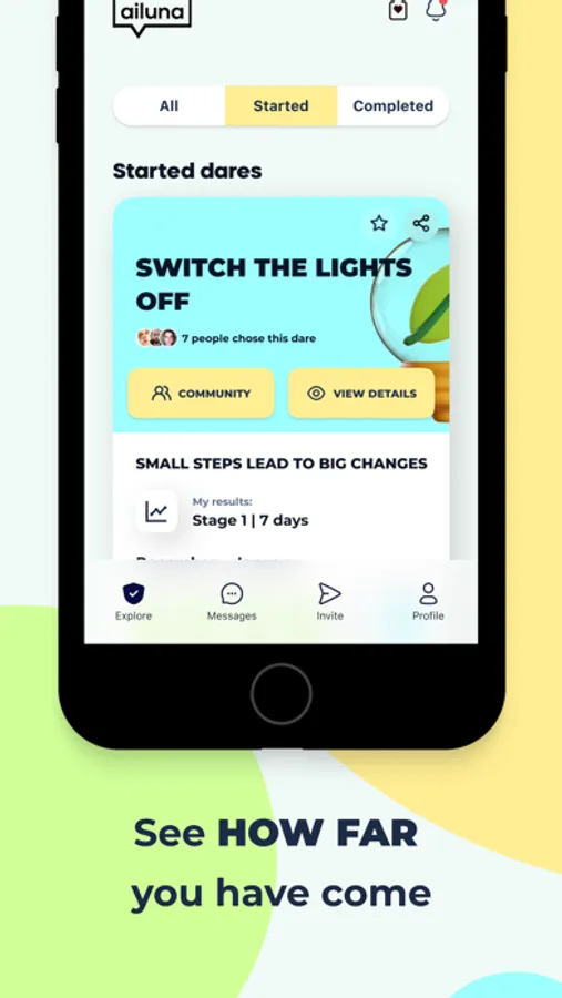 • Exchange 1:1 messages to encourage, support and share your tips with your Ailuna connections.