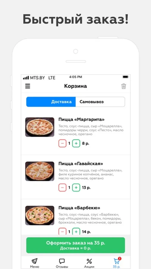 — Быстрый заказ с мгновенным подтверждением через приложение.