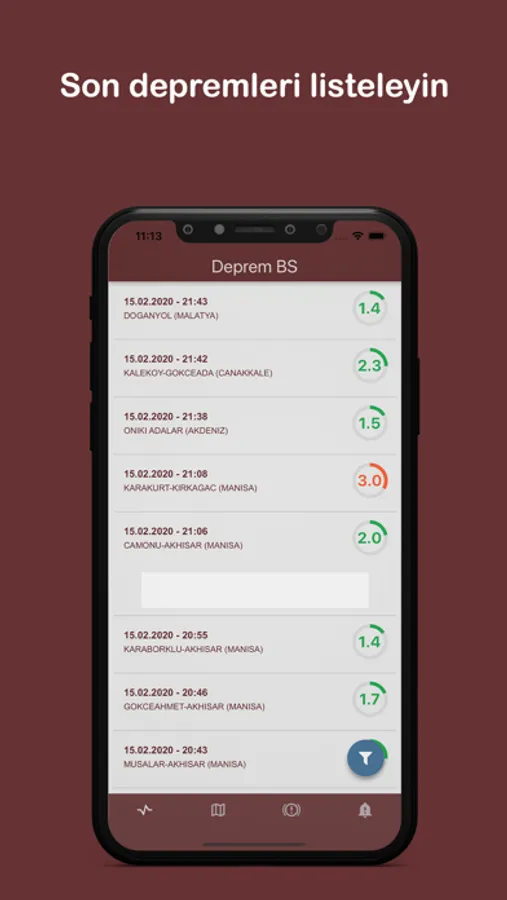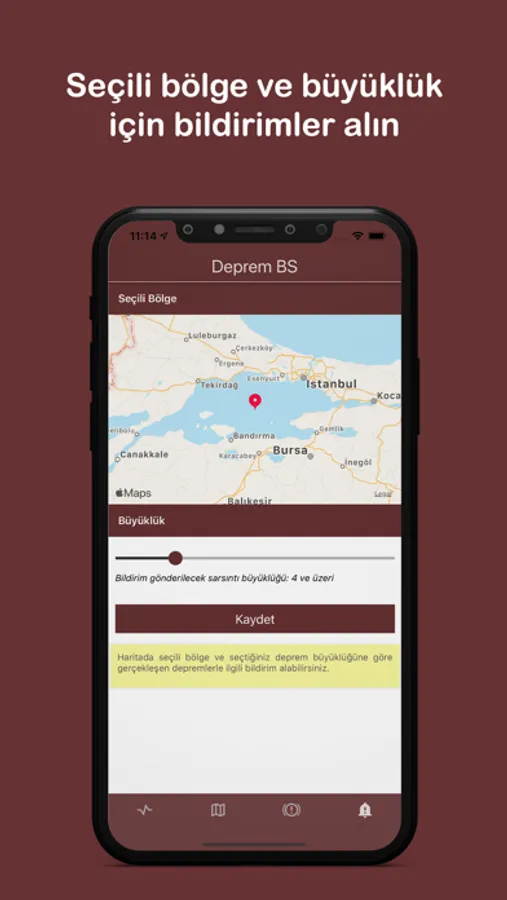 Belirlediğiniz bölge ve deprem büyüklüğüne göre bildirim alabilirsiniz.