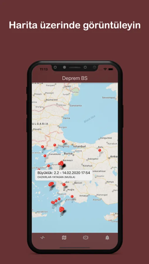 Türkiye'de meydana gelen depremleri listeleyebilir ve harita üzerinde görüntüleyebilirsiniz.